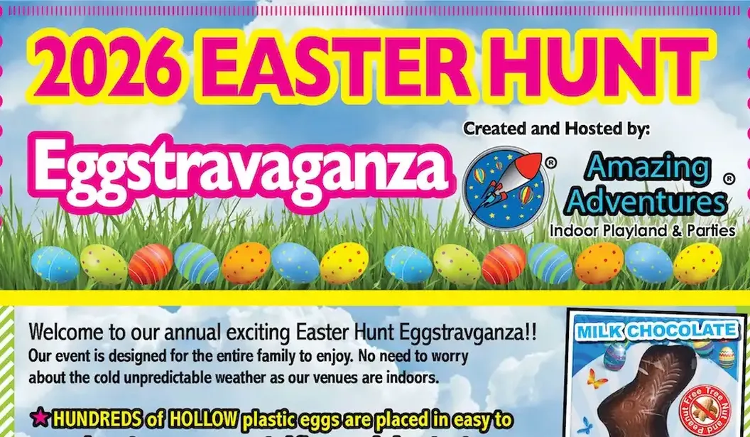 Welcome to the annual exciting Easter Hunt Eggstravaganza!! This event is designed for the entire family to enjoy. ------- HIGHLIGHTS ------- - Hundreds of hollow plastic eggs are placed in easy-to-reach spots over carpeted floors and play structures - Collect as many HOLLOW eggs as you can find before returning them and continuing to play in the facility. - Each child will receive 1 SOLID 90g Milk Chocolate Easter Bunny, Individually packaged, Canadian Made & Nut Free! - Each egg hunt timeslot is 90 Minutes from start to finish. Guests are welcome to play during the egg hunt time. Please read below for times and dates. - Bring a basket to pick up the Easter eggs! NOTE: Baskets are not provided HURRY! LIMITED SPACES! Tickets are first come first serve! -------- SCHEDULE -------- - 2885 Argentia Road, Mississauga Dates: Thu 2nd April 5:30pm - 7:00pm Fri 3rd April 10:00 to 7:30pm with timed slots Sun, 5th April 10:00 to 5:30 pm with timed slots Mon, 6th April 10:00 to 1:30pm - 333 Wyecroft Road - Oakville Dates: Thu 2nd April 5:30pm - 7:00pm Fri 3rd April 10:00 to 7:30pm with timed slots Fri 3rd April 10:00 to 7:30pm with timed slots Sun, 5th April 10:00 to 5:30 pm with timed slots