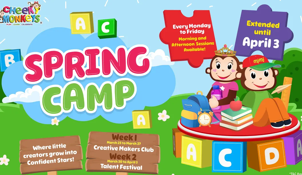 Looking for a fun and engaging way to keep the kids busy this Spring Break? The Cheeky Monkeys Spring Camp is packed with creativity, games, and exciting activities designed to keep little ones active and entertained. Each week features a fun theme that encourages imagination, creativity, and confidence-building through interactive play and group activities. ---------- CAMP THEMES ---------- - Creative Makers Club: Arts, crafts, and hands-on creative fun - Talent Festival: Kids can sing, dance, perform, and show off their unique talents - Children will also enjoy plenty of playtime, social activities, and tasty breaks throughout the day. ---------- WHAT'S INCLUDED ---------- - Kids meal and snacks - Creative and group activities - Safe, supervised playtime ---------- CAMP INFORMATION ---------- DATES: March 9 to April 3 (Monday to Friday) PRICES: 1 Session: AED 139.5 (was AED 155) 5 Consecutive Sessions: AED 629.1 (was AED 699) ---------- SESSION TIMINGS ---------- Morning and afternoon sessions available depending on location. Arabian Ranches: 9:00 AM – 1:00 PM | 2:00 PM – 6:00 PM Downtown Dubai: 9:00 AM – 1:00 PM | 2:00 PM – 6:00 PM J3 Mall: 9:00 AM – 1:00 PM | 2:00 PM – 6:00 PM Mirdif Hills: 10:00 AM – 2:00 PM | 2:00 PM – 6:00 PM Al Ain: 12:00 PM – 4:00 PM | 7:00 PM – 11:00 PM Abu Dhabi: 9:00 AM – 1:00 PM | 2:00 PM – 6:00 PM Ajman: 10:00 AM – 2:00 PM | 3:00 PM – 7:00 PM Ras Al Khaimah: 11:00 AM – 3:00 PM | 4:00 PM – 8:00 PM ---------- Let the kids make new friends, discover their talents, and enjoy a spring break filled with creativity and play!
